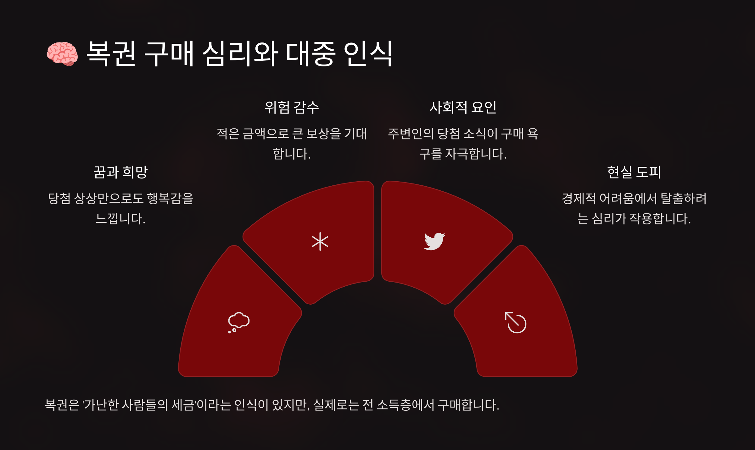 복권 구매 심리와 대중 인식 복권은 단순히 돈을 노리는 수단이 아니라, 일상 속 작은 희망과 기대의 상징처럼 여겨져요. 대부분의 사람들은 당첨될 확률이 낮다는 걸 알면서도 매주 로또나 연금복권을 사요. 왜 그럴까요? 그건 복권이 '꿈을 사는 행위'로 인식되기 때문이에요. 🎫