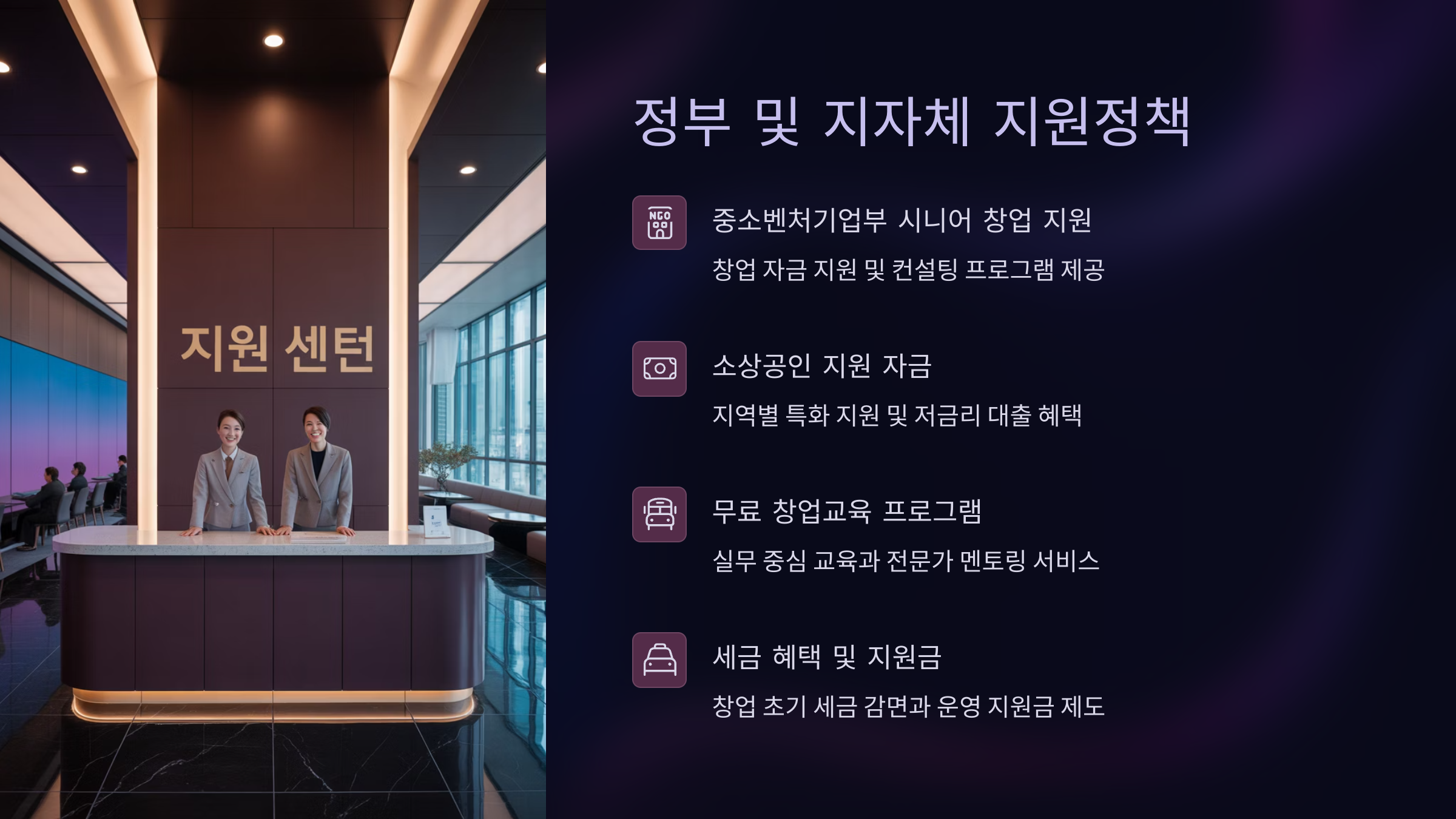 지자체도 적극적으로 나서고 있어요. 서울시는 ‘서울시50플러스재단’을 통해 창업 교육과 사무공간을 제공하고 있고, 경기도는 ‘G-창업 프로그램’을 통해 경력 전환과 창업을 지원하고 있어요. 부산, 대구, 광주 등 주요 도시에서도 창업지원센터를 운영 중이에요.