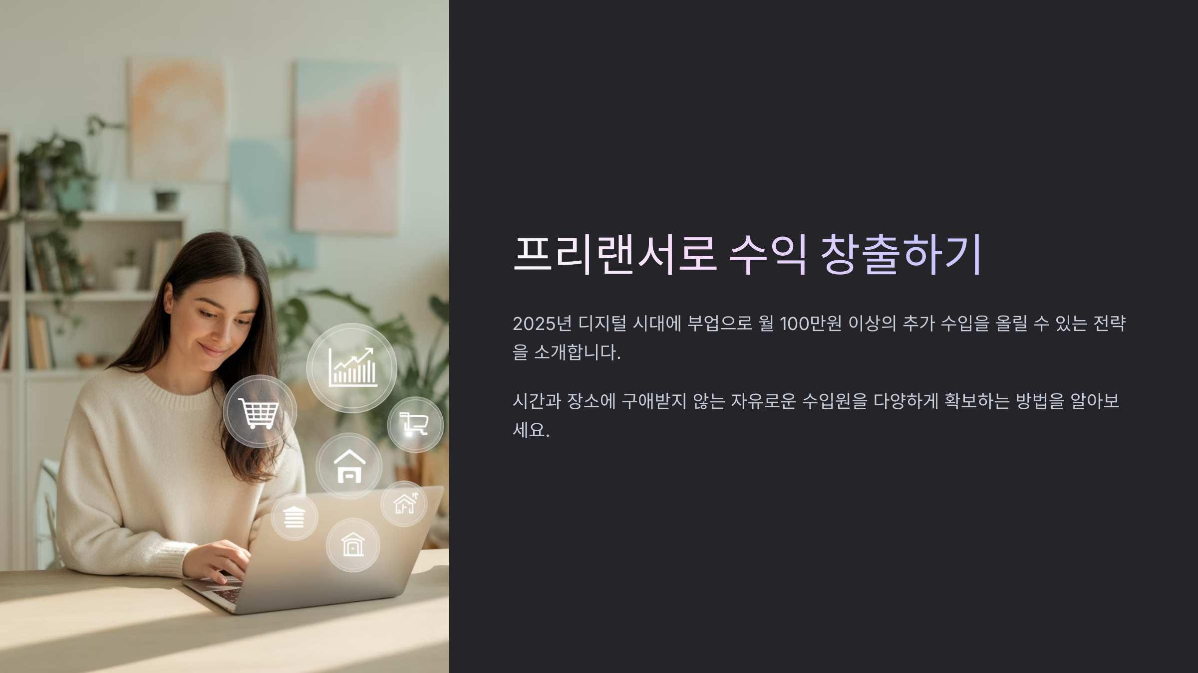 프리랜서의 장점은 시간과 장소의 제약이 거의 없다는 점이에요. 아침에 일어나 커피 마시며 일하거나, 여행지에서도 인터넷만 되면 일할 수 있어요. 물론 처음에는 소득이 불규칙할 수 있지만, 꾸준히 하다 보면 월 300만 원 이상 버는 것도 충분히 가능해요.