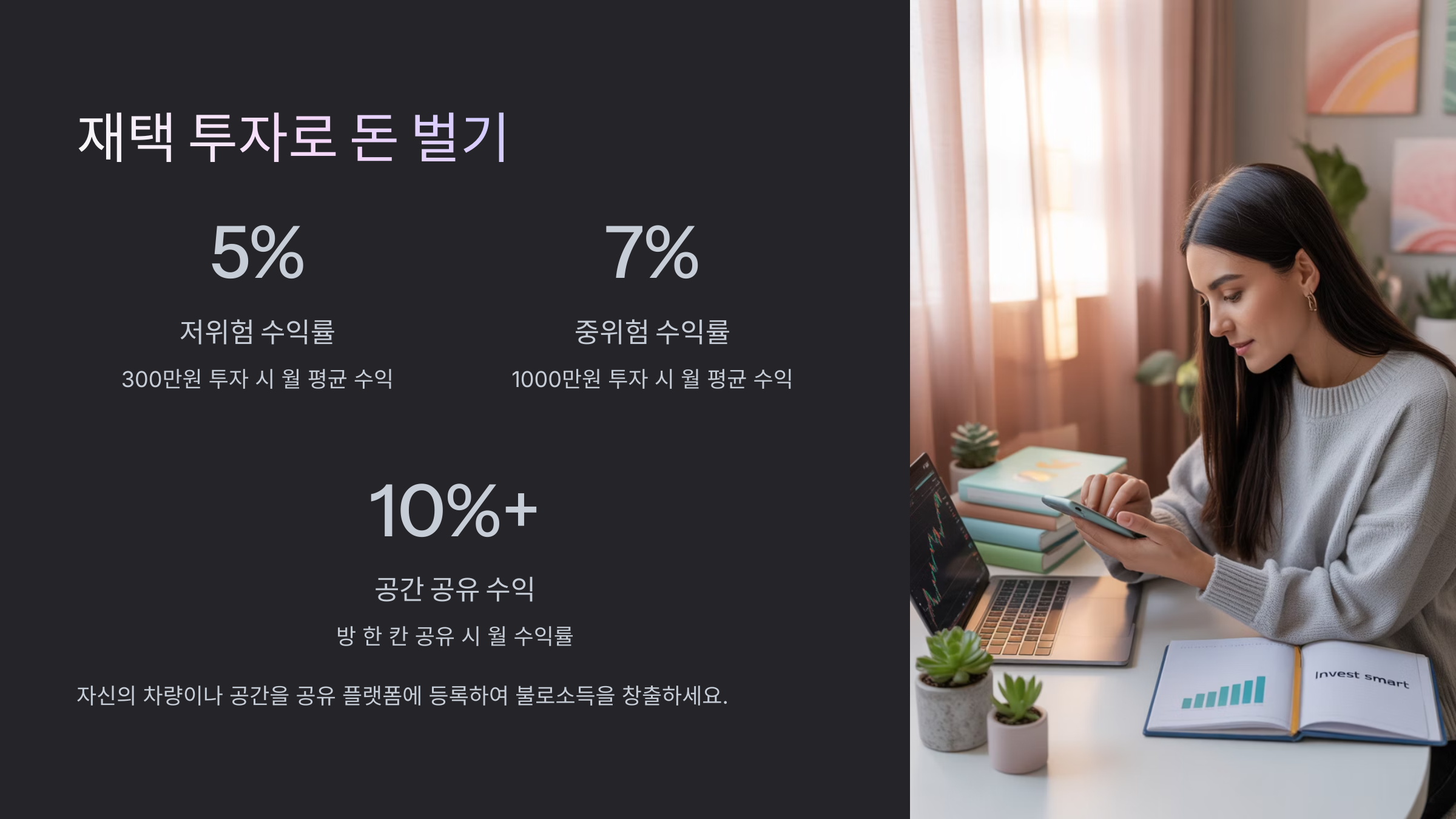 이제부터 본격적으로 각 방법들을 살펴보면서, 어떤 식으로 수익 구조를 만들고 유지할 수 있는지 차근차근 알려줄게요! 🏠