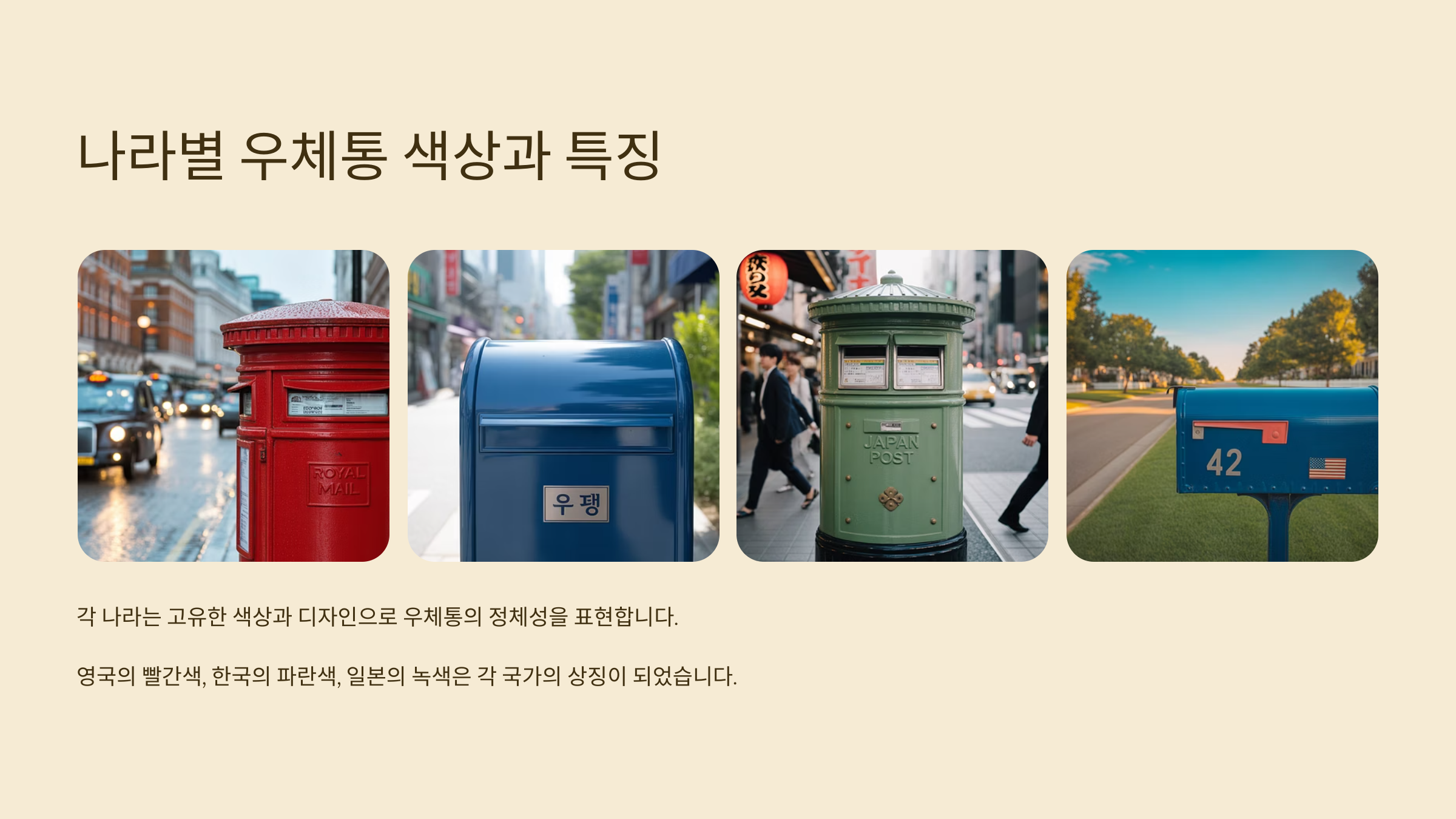 이런 색상의 다양성은 각국 여행 시 발견하는 소소한 재미이기도 해요. 우체통의 색을 보면 그 나라의 우편문화 수준이나 공공 인식도도 느껴지죠. 세계를 돌며 우체통 색을 수집하거나 기록하는 마니아들도 있을 정도예요. 💌
