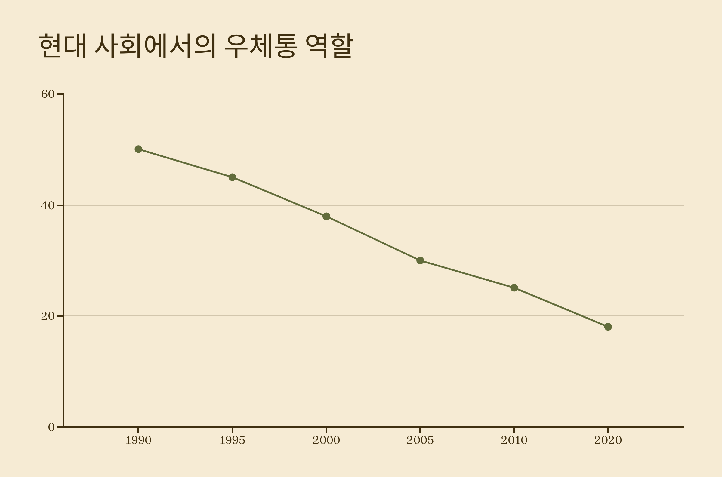 2000년대 이후 디지털 통신의 발달로 편지를 쓰는 문화가 줄어들면서, 우체통 수도 서서히 줄기 시작했어요. 특히 SNS와 모바일 메시지가 활성화되며 일상적인 서신은 급감했고, 그에 따라 골목이나 주택가 우체통은 점차 철거되었죠. 하지만 대신 관공서, 학교, 병원 등에 집중적으로 남아 있어요.