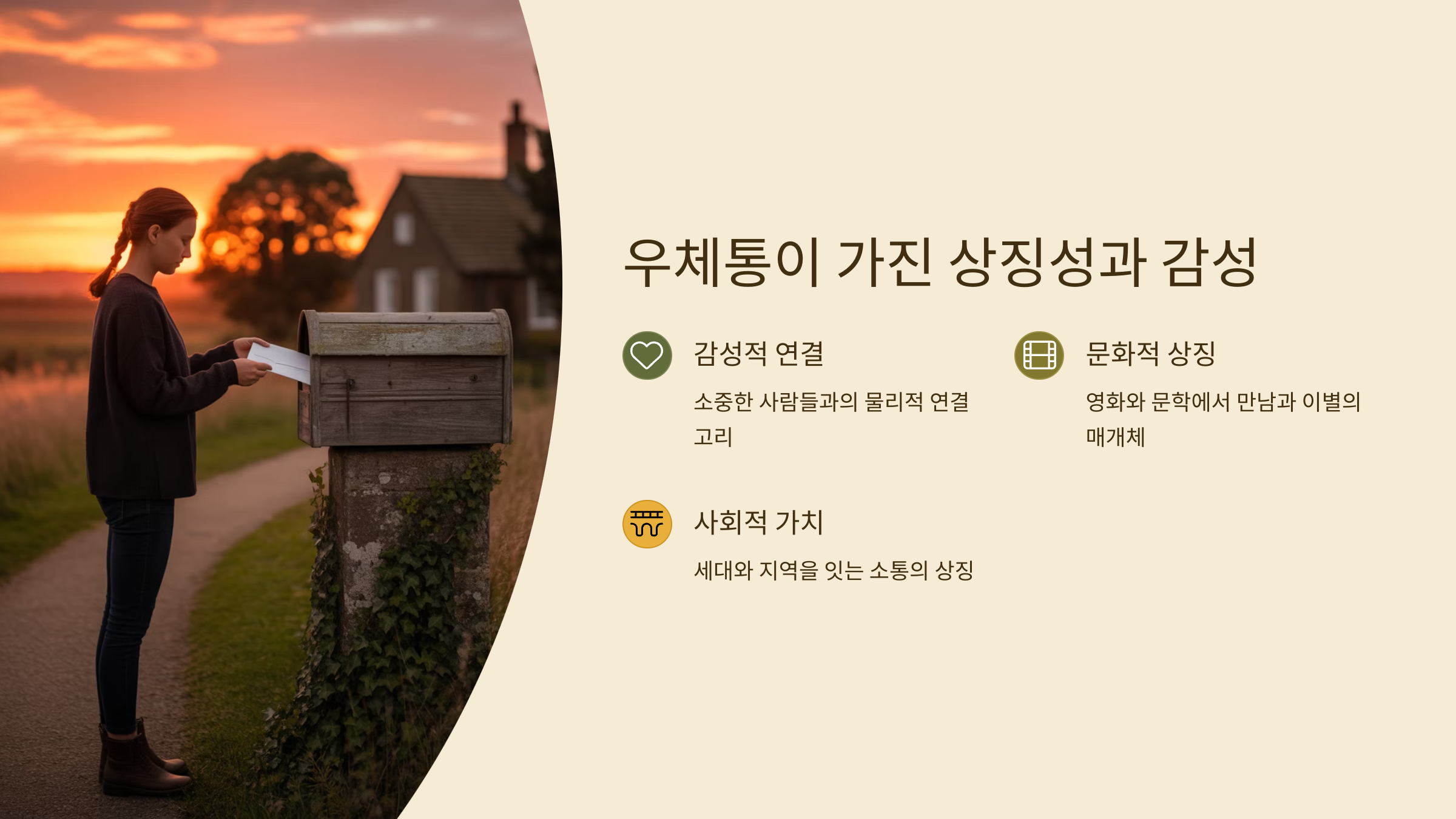우체통은 단순히 우편물을 수거하는 기계적인 도구가 아니에요. 그 안에는 시대를 초월한 사람들의 감정과 이야기가 담겨 있어요. 편지를 넣는 행위는 디지털 시대 이전에는 누군가와 소통하는 가장 진지한 방법 중 하나였고, 우체통은 그 첫걸음이자 마지막 접점이었어요.