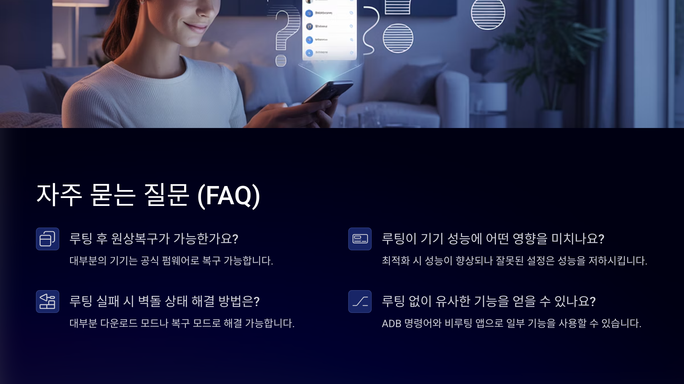 Q1. 루팅을 하면 스마트폰이 빨라지나요?A1. 꼭 그런 건 아니에요. 불필요한 시스템 앱을 제거하고 CPU 클럭 조정을 통해 성능이 향상될 수 있지만, 잘못 설정하면 발열이나 배터리 소모가 더 심해질 수도 있어요.