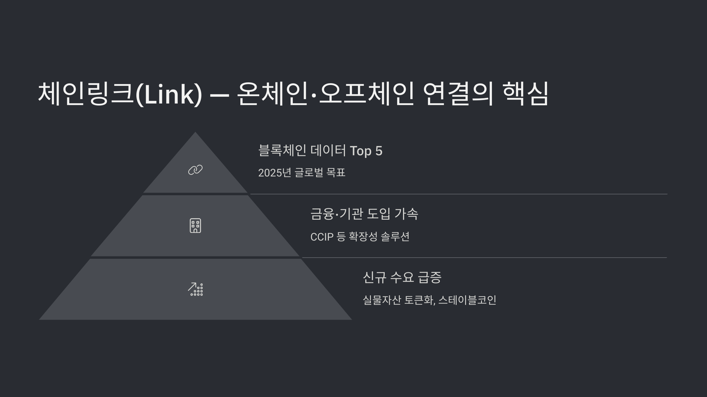 체인링크는 블록체인 오라클(Oracle) 분야의 절대 강자예요. 모든 스마트컨트랙트가 외부 데이터를 안전하게 받아오기 위해선 오라클이 필요한데, 체인링크는 이 부분을 가장 강력하고 안정적으로 해결해줘요. 가격 데이터, 날씨 정보, 스포츠 경기 결과 등 다양한 현실 세계 데이터를 블록체인으로 연결해주는 역할을 하죠.2025년 현재, 체인링크는 기존의 단순 데이터 제공을 넘어 ‘CCIP(크로스체인 상호운용성 프로토콜)’을 중심으로 다시 한 번 비약적인 도약을 준비하고 있어요. 이 CCIP 기술은 서로 다른 블록체인 간에 자산과 데이터를 직접적으로 주고받을 수 있게 해주는 기술이에요.