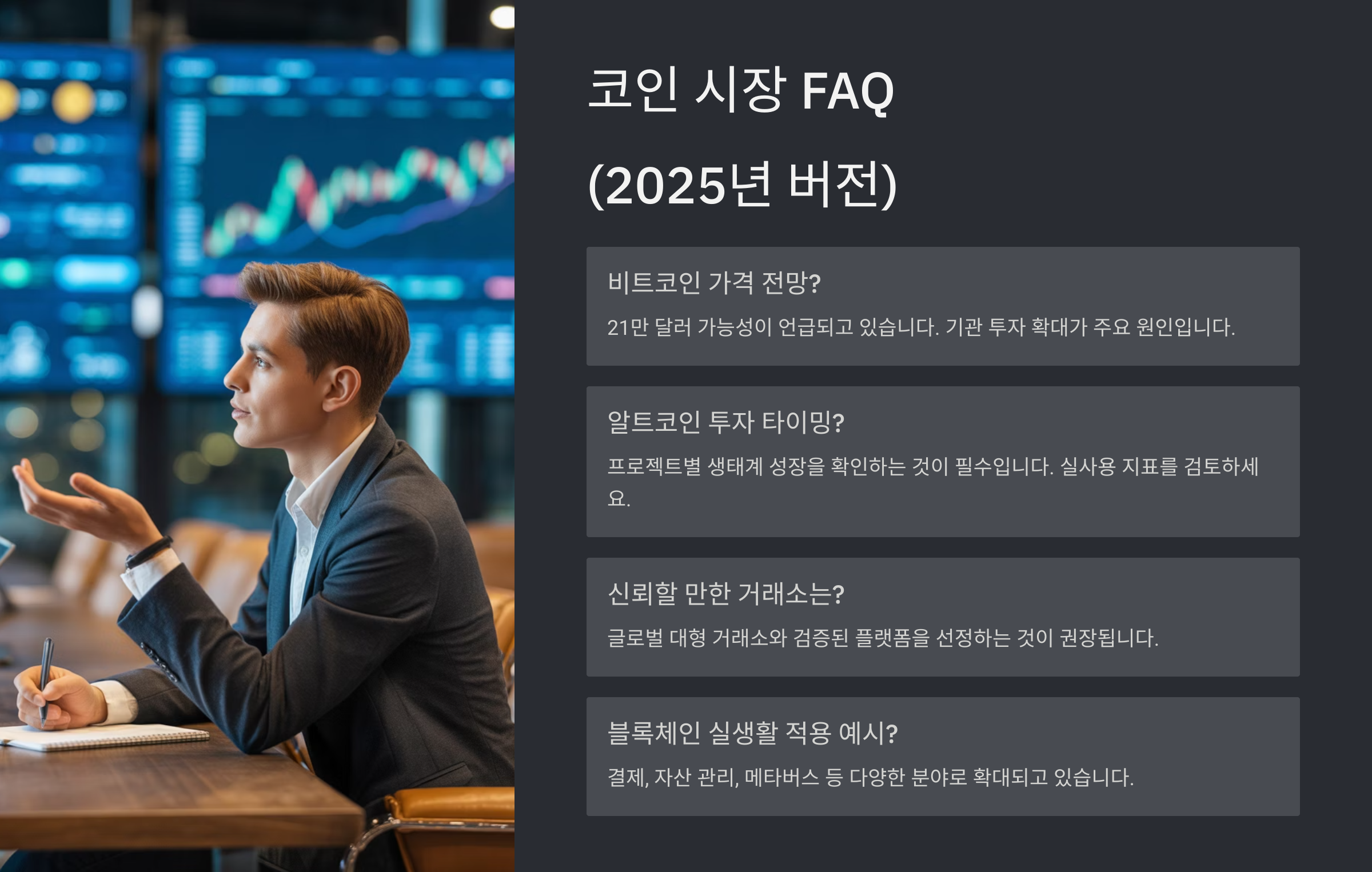 A4. AI는 모든 산업에 영향을 미치고 있어요. 그 기반이 되는 인프라에 투자하는 개념으로 보면, AI 코인은 미래 가치를 담고 있는 종목이에요.