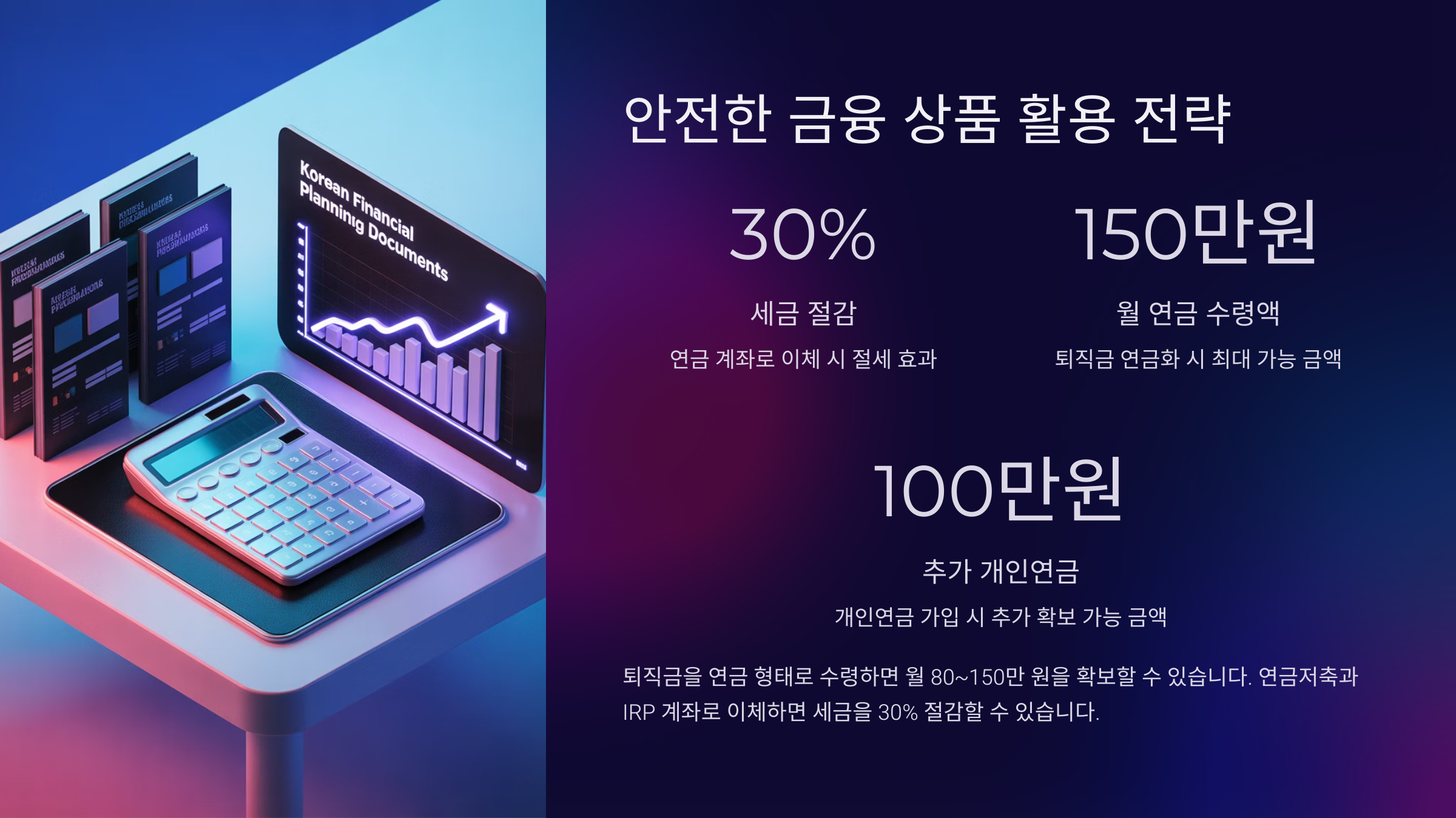 이런 금융 상품들을 포트폴리오로 구성하면, 퇴직금이나 모아둔 자금을 단순히 묵히는 것이 아니라, ‘현금창출 자산’으로 활용할 수 있어요. 돈이 일을 하게 만드는 거죠 😎