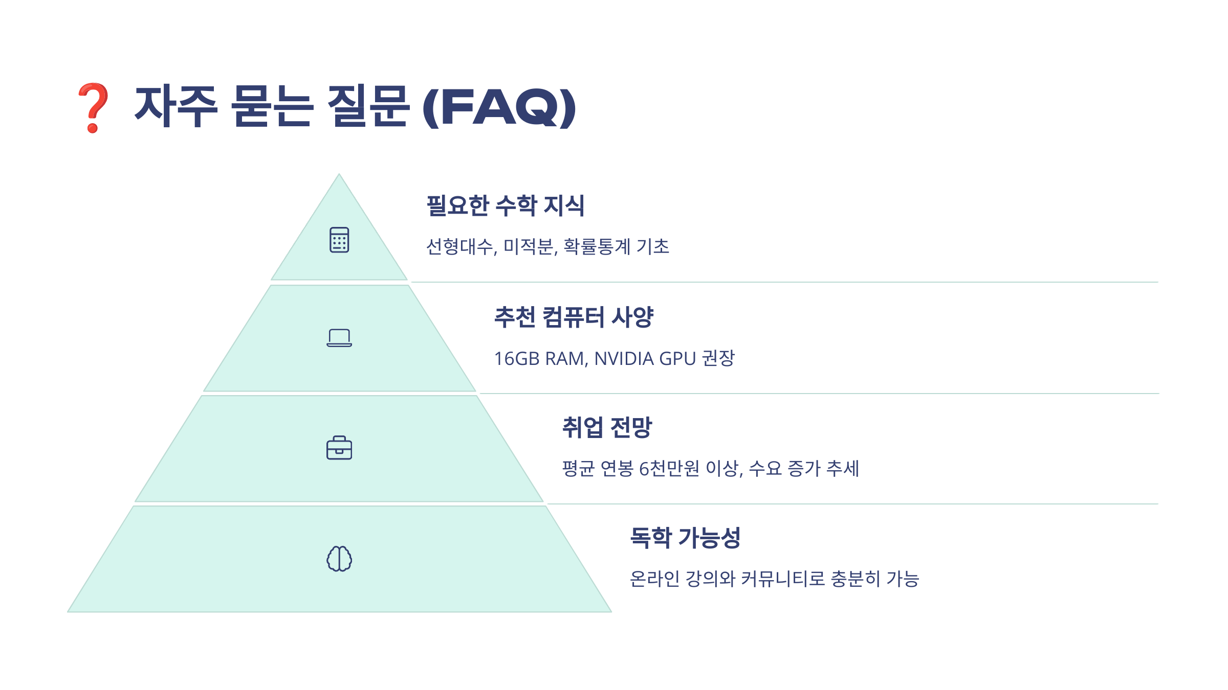 A1. 기초 수학만 알아도 시작할 수 있어요! 고급 수학은 나중에 필요할 때 천천히 배우면 돼요.